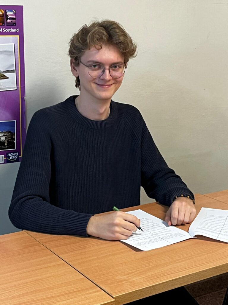 Jest nam bardzo miło podzielić się informacją z ostatniej chwili, iż nasz kolega Miłosz Kruk z klasy IVB został zakwalifikowany do części II etapu I Olimpiady Języka Angielskiego.
