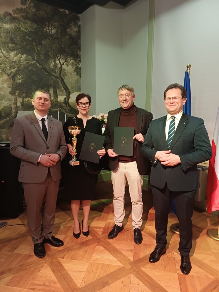 Wyróżnienie za kształtowanie kierunków rozwoju sportu w Powiecie Pajęczańskim odebrał z rąk Starosty Pajęczańskiego pana Jarosława Szczęsnego oraz Wicestarosty Pajęczańskiego pana Zbigniewa Gajęckiego nauczyciel wychowania fizycznego pan Piotr Trawczyński.