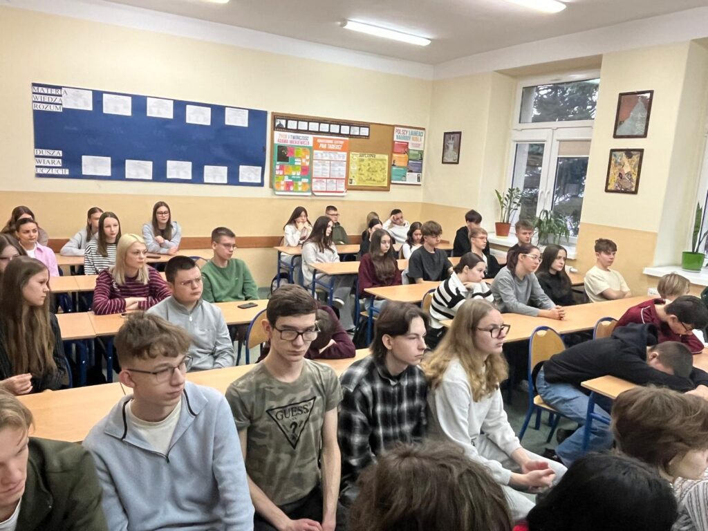 18 grudnia 2025 roku, w ramach zajęć z doradztwa zawodowego, odbyło się spotkanie uczniów klas III A, III C oraz IV A z naszą absolwentką – Martyną Dubińską. Tematem spotkania było hasło: „GŁOS – to nasza energia. Holistyczna praca z głosem”.