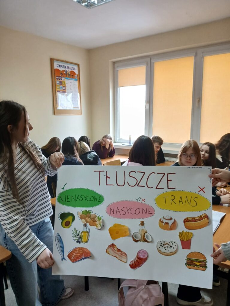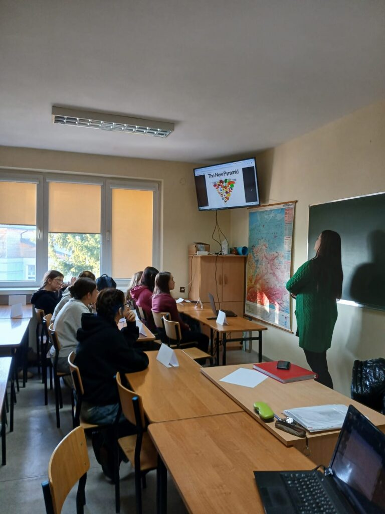 Za nami pierwszy cykl spotkań z naszą absolwentką, p. Kingą Misiak, studentką piątego roku dietetyki na Uniwersytecie w Opolu.  Podczas spotkań młodzież rozpoczęła swoją przygodę z tematem świadomego wybierania tego, co trafia na ich talerze. Uczniowie rozmawiali o codziennych nawykach, o tym, dlaczego warto zwracać uwagę na to, co jemy na co dzień. Uczniowie zapoznali się: